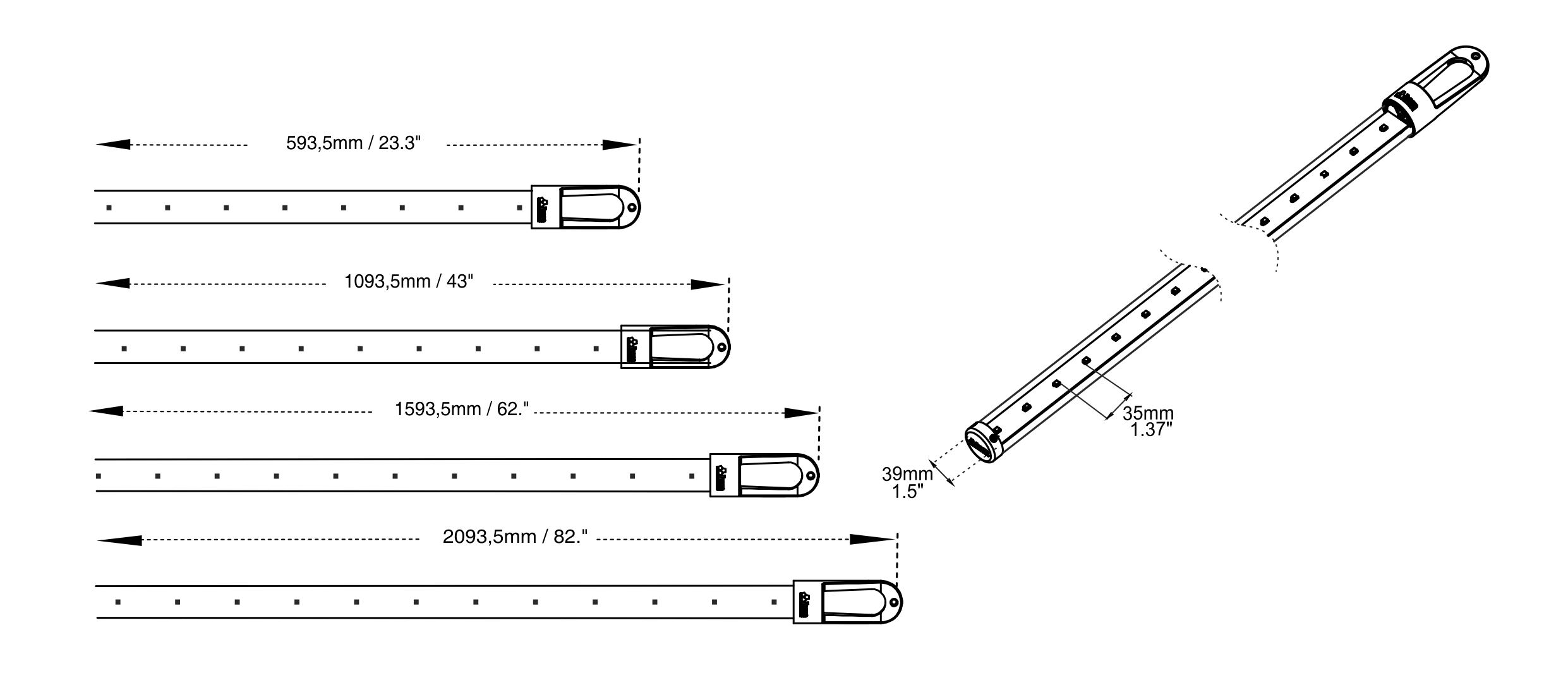 • Available for different forms of applications in different lengths: 500mm, 1000mm, 1500mm, 2000mm.