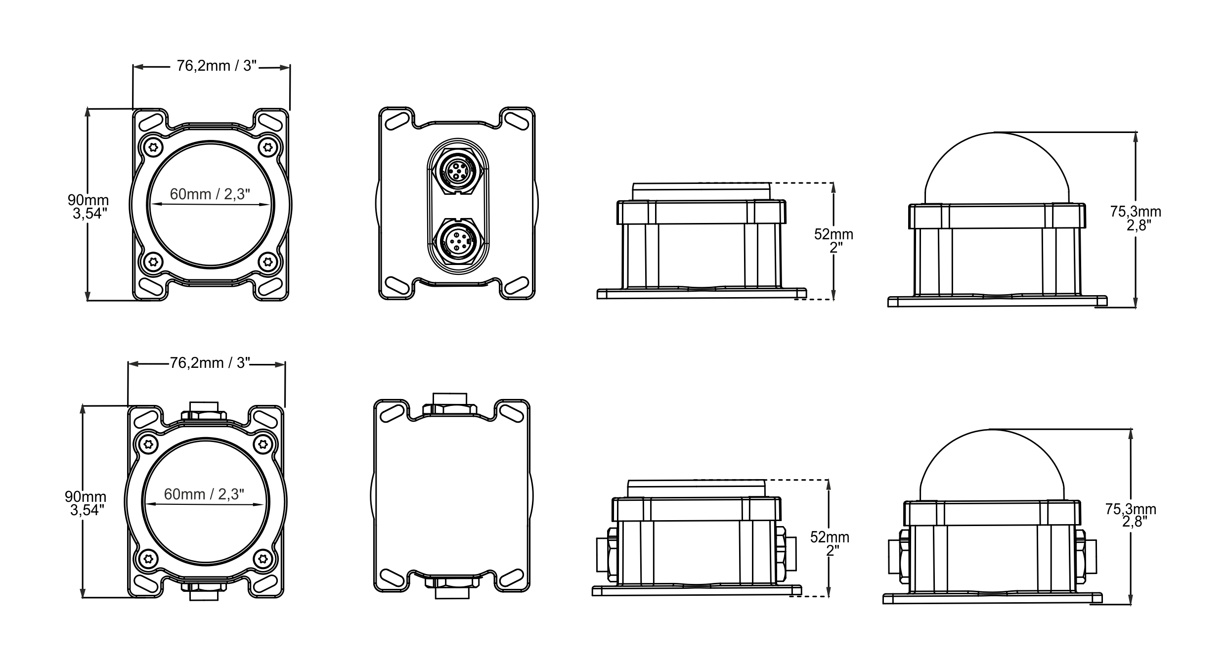 • Direct View and Dome options are available. Connectors are located on the rear in the PD60 RGB version, and on the side surfaces in the PD60S RGB version. Transparent and opaque caps are resistant to UV and impact and never turn yellow during their lifetime due to the alloyed PMMA and PC structure.